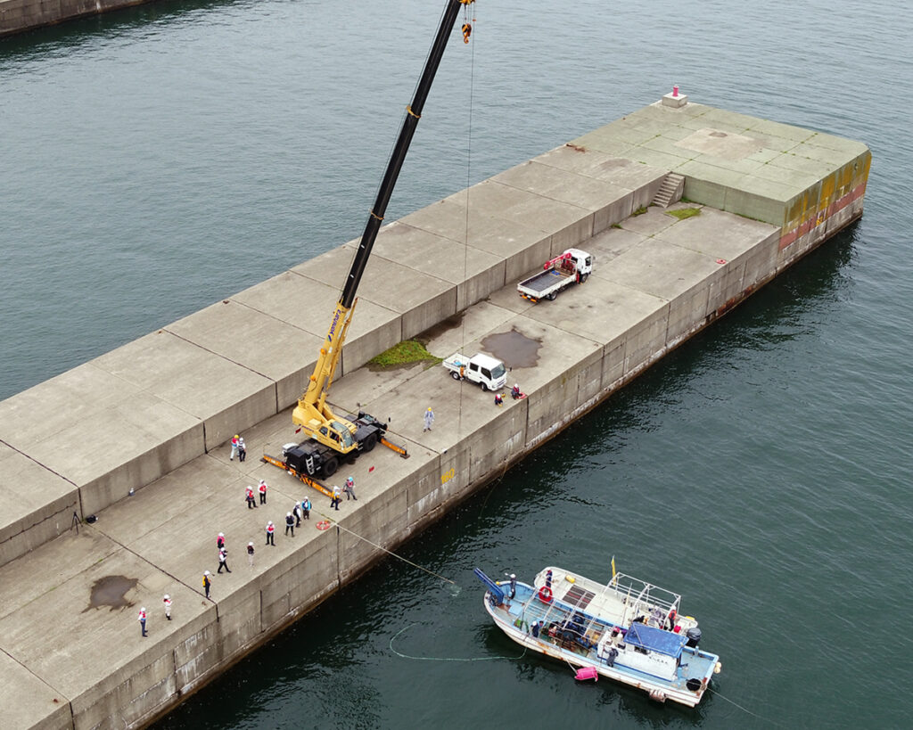 2023年7月、新潟県や上越市などからご協力いただき、上越市の直江津港の水深約15mに日本酒やワイン、米などを沈めました。